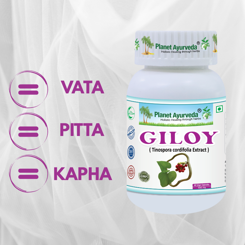 Giloy (Tinospora cordifolia) sa v ajurvéde označuje pre svoje široké použitie pojmom amrita (preklad: nesmrteľnosť). Je známa aj pod názvom „indický chinín“, ajurvéda ju pozná pod názvom Guduchi. Tinospora cordifolia pôsobí ako antioxidant, v ajurvéde sa už po stáročia používa na podporu imunity. Má priaznivý vplyv hneď na niekoľko telesných funkcií (funkcia pečene, dýchací systém, močové cesty). Priaznivo sa tiež podieľa na metabolizme lipidov. Giloy má tiež adaptogénne účinky.
