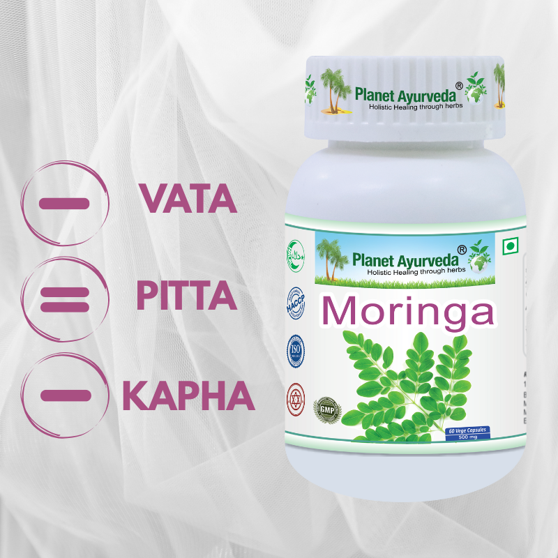 Moringa sa v Indii používa pre svoje antioxidačné účinky a pozitívny vplyv na zvýšenie obranyschopnosti pred rôznymi infekciami, čo sa využíva predovšetkým pri infekciách močového traktu. Extrakt z kôry moringy sa využíva pri kardiovaskulárnych ochoreniach, na zlepšenie cirkulácie krvi a zníženie vysokého krvného tlaku. Moringa z hľadiska ajurvédy znižuje dóše Vata a Kapha.