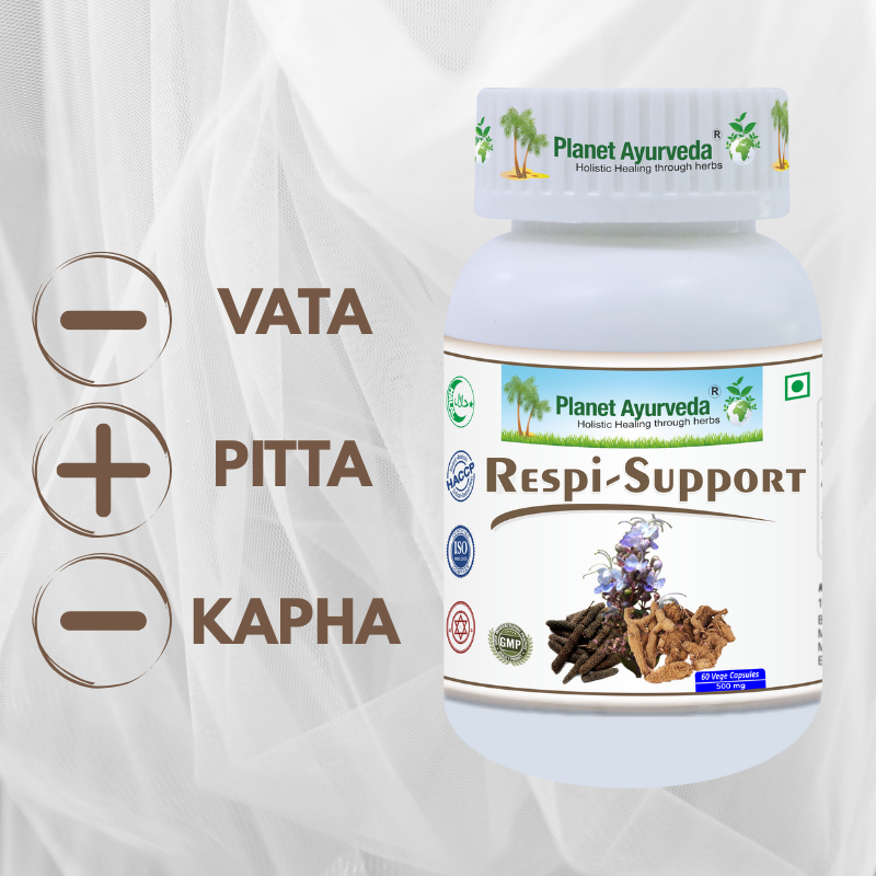 Respi Support je bylinný doplnok navrhnutý na podporu zdravia dýchacieho systému. Tento produkt obsahuje zmes tradičných bylín ako Tulsi, Pippali a sladké drievko, ktoré sú známe svojimi protizápalovými a antimikrobiálnymi vlastnosťami, čím prispievajú k zlepšeniu funkcie pľúc a obranyschopnosti proti respiračným infekciám. Respi Support je ideálny pre ľudí trpiacich opakovanými respiračnými problémami, alergiami alebo pre tých, ktorí sa chcú prirodzene chrániť pred sezónnymi ochoreniami.